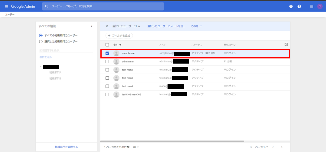 Gsuiteの管理画面から見ても、全ユーザ取得できていることがわかります。