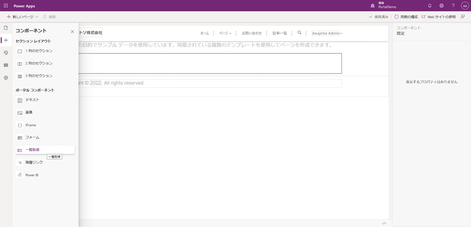 ポータルアプリの編集(一覧画面)