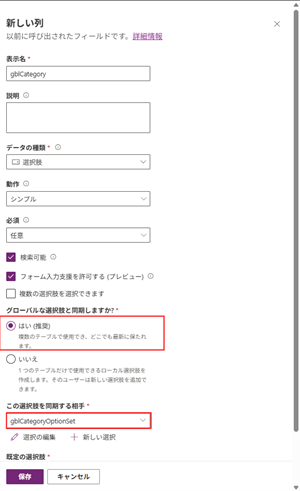 補足:「グローバルな選択肢のリスト」を設定Choices(gblCategoryOptionSet)