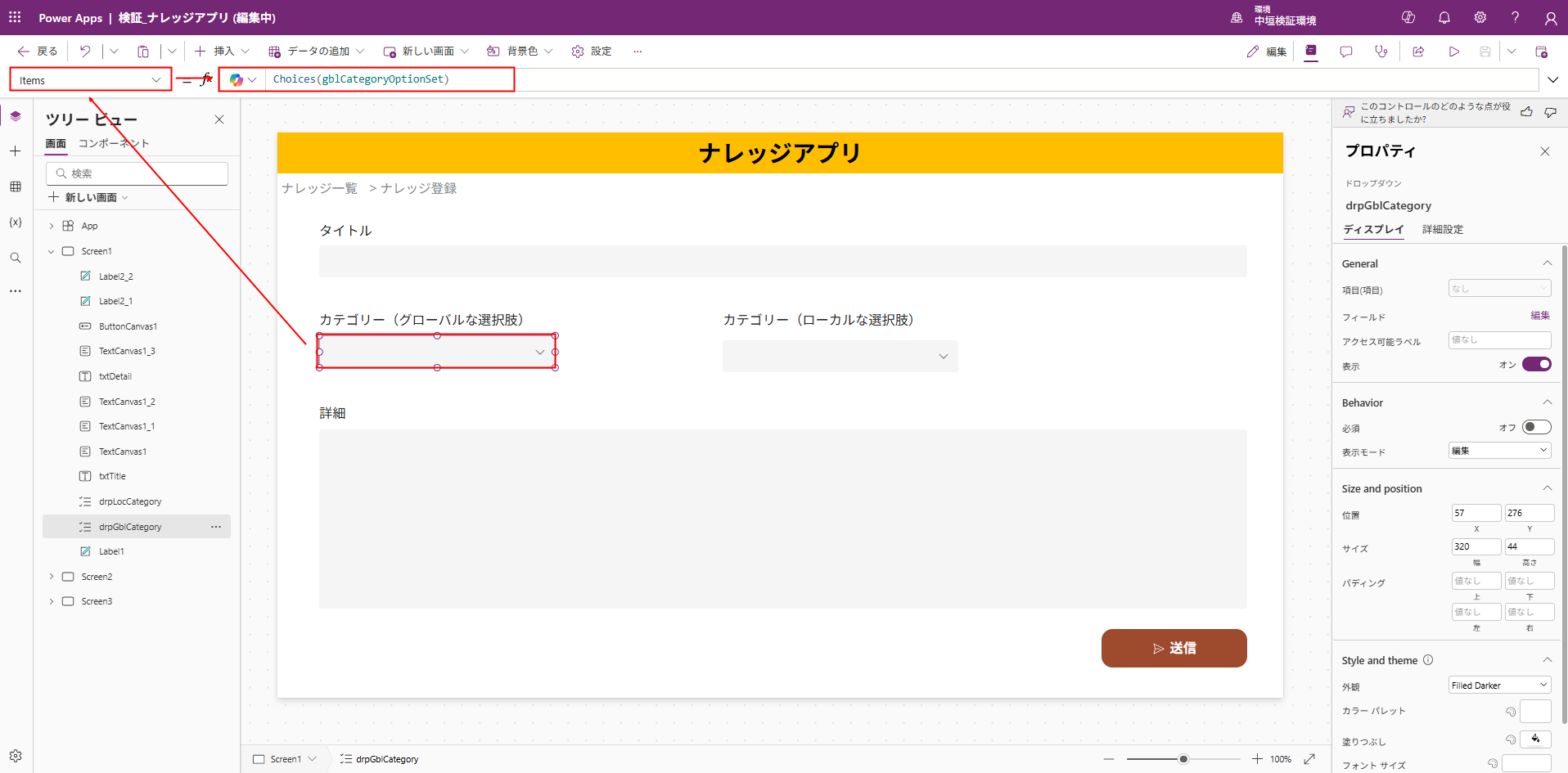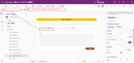 補足:「'列名(テーブル名)'」を設定Choices('locCategory (KnowledgeTable)')