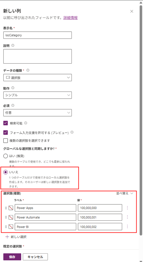まず、Dataverseの選択肢型には、グローバル選択肢とローカル選択肢の2種類があります。