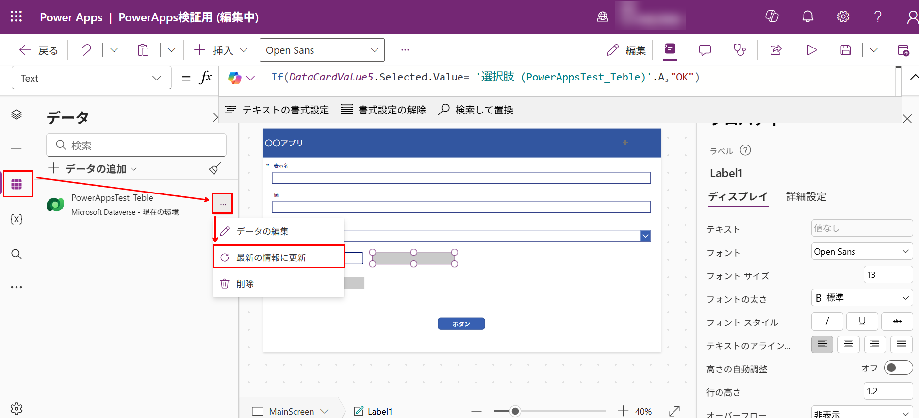 DataverseやExcel側で「列の名前」を変更した場合、Power Appsは自動では気づいてくれません。