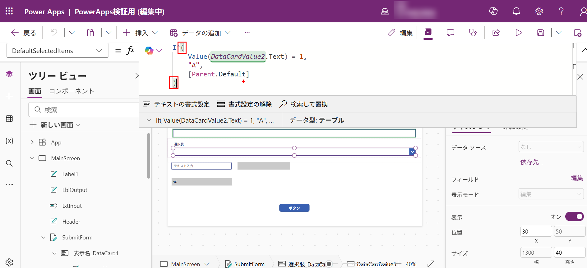 Power Appsの数式は、基本的に半角英数字で記述する必要があります。
