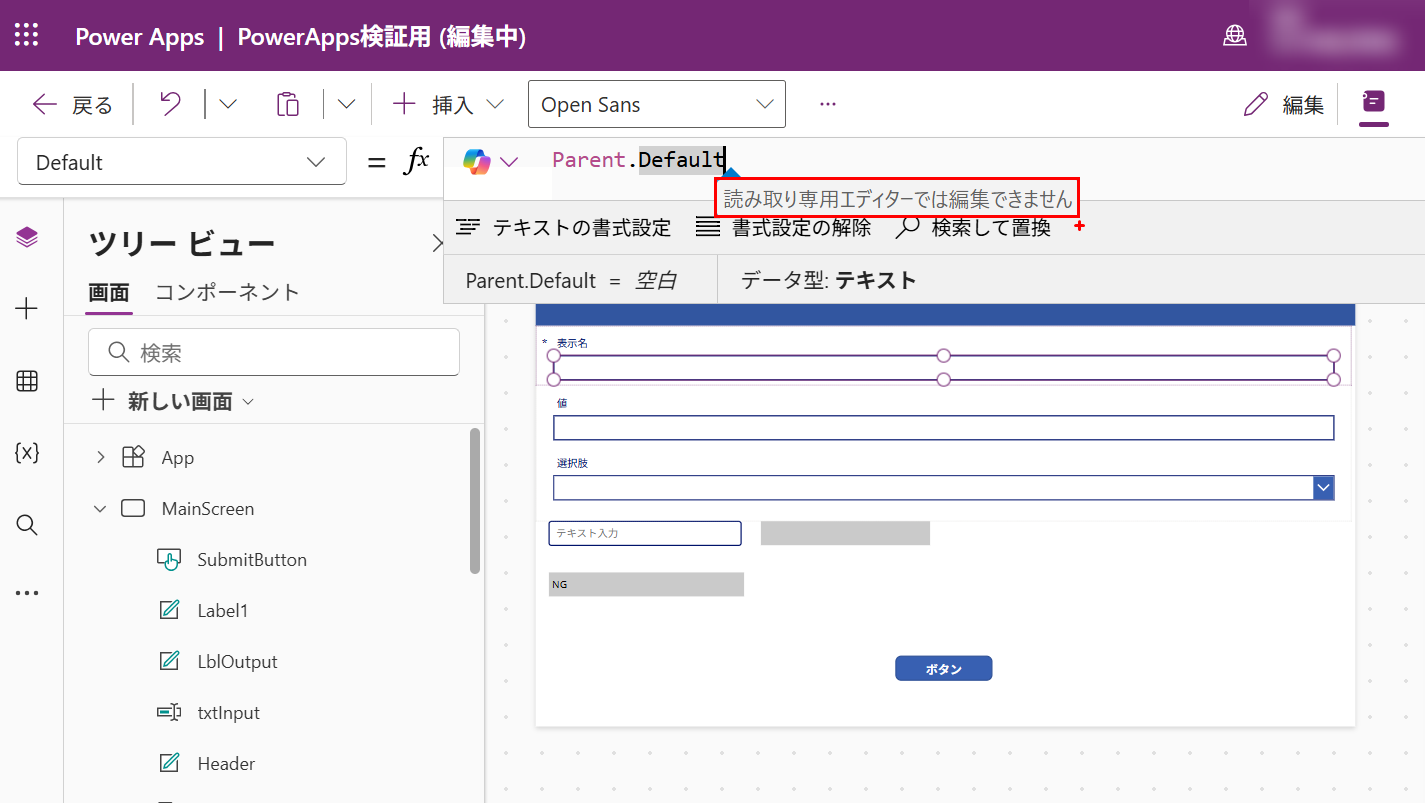 Power Apps Studio自体の挙動が不安定な場合、リロードでエラーが解消される可能性があります。