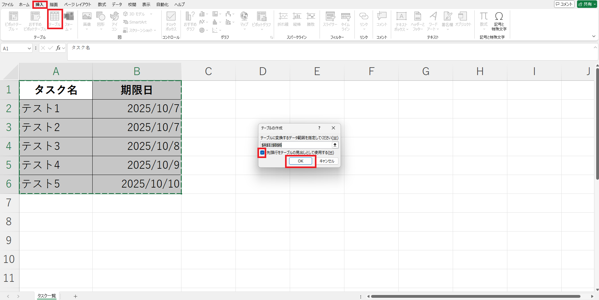 STEP2:タスクリストを作成し、「テーブル」に変換する