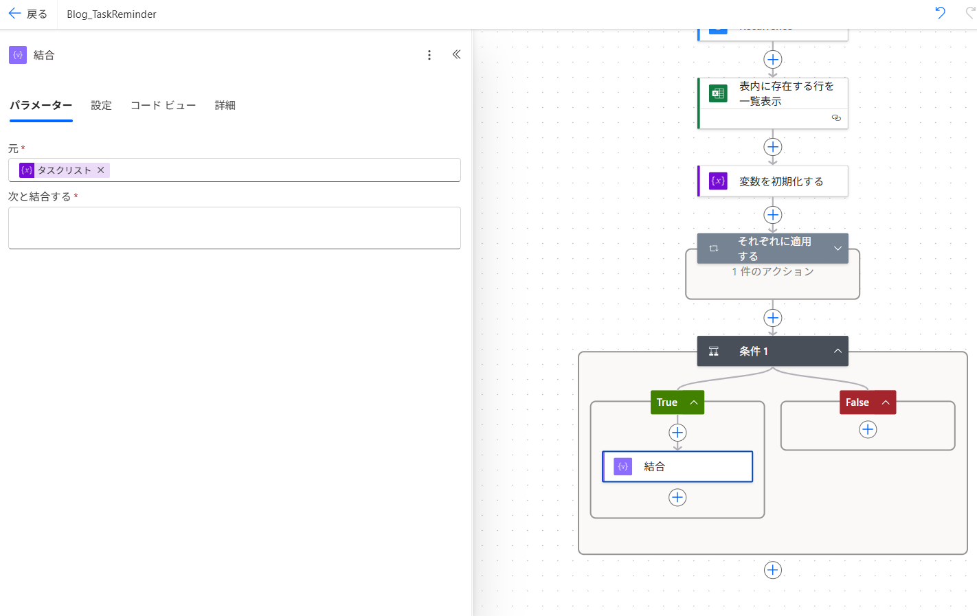 この処理は、複数のタスクがある際に、一つにまとめて、Teamsの返信で使えるようにするという処理です。