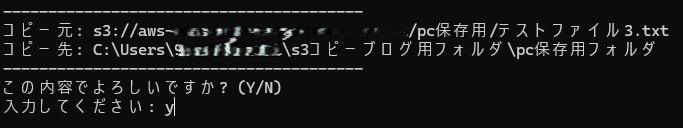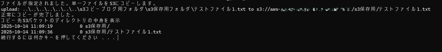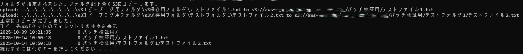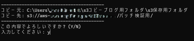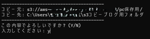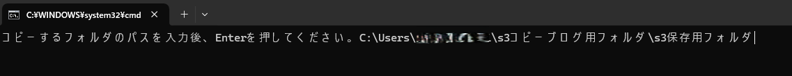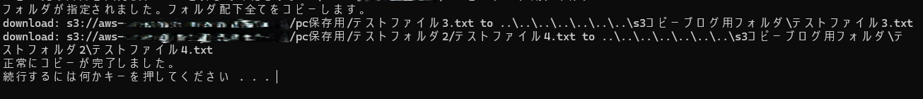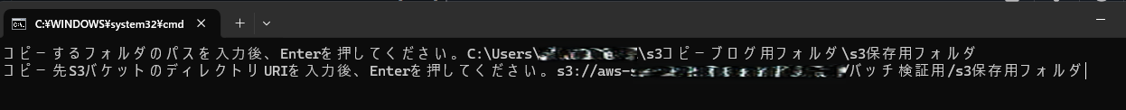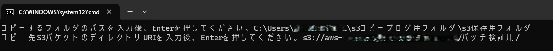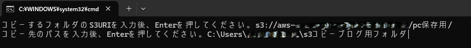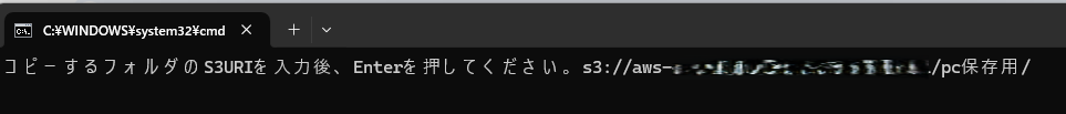 set /p bucketuri=コピーするフォルダのS3URIを入力後、Enterを押してください。