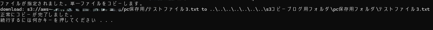 echo ファイルが指定されました。単一ファイルをS3にコピーします。