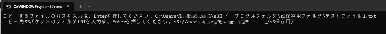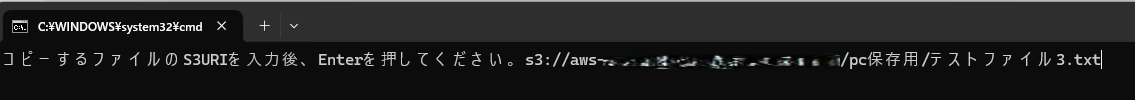 set /p bucketuri=コピーするファイルのS3URIを入力後、Enterを押してください。