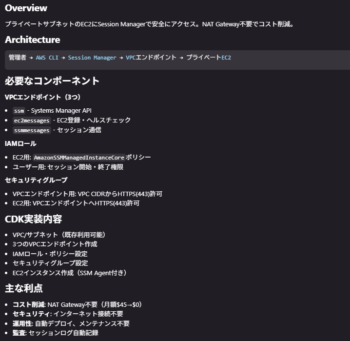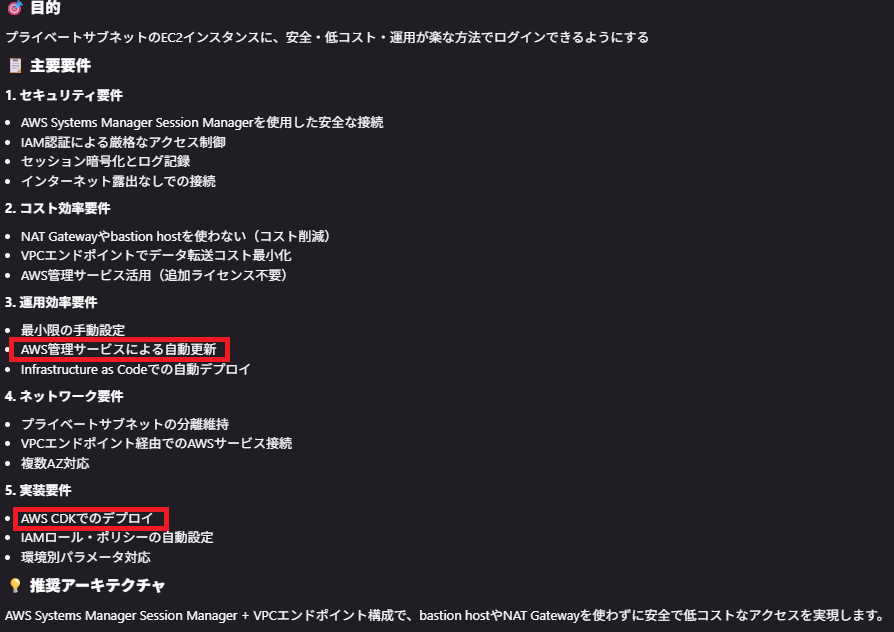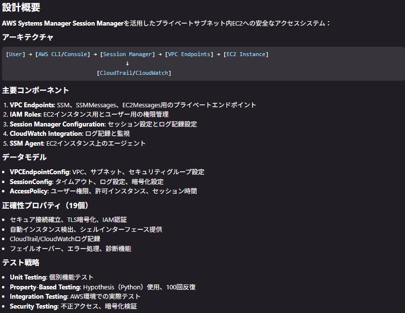 今回は比較した2つの設計ドキュメントは、どちらも「Session Managerによる安全なアクセス」と接続方式は同一でした。