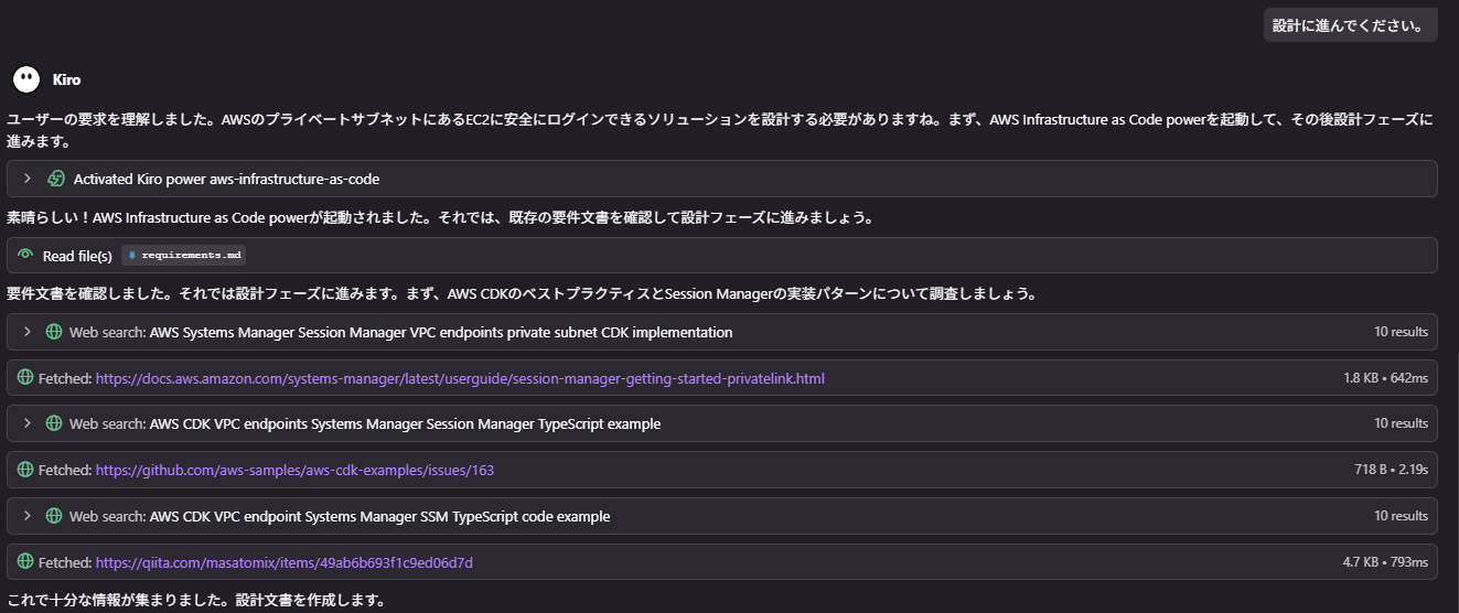 筆者の独自検証では、Powersあり版においてKiroが「自律型AIエージェント」として動作し、不足している情報を自ら調べて補完する挙動を確認。ビジネス的正当性を備えた設計ドキュメントの生成プロセスを実証しました。
