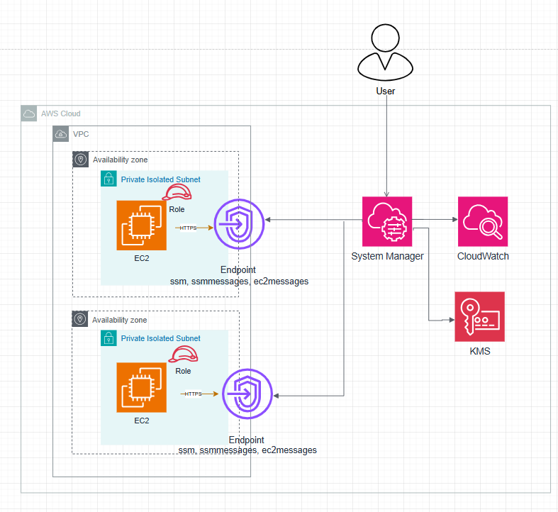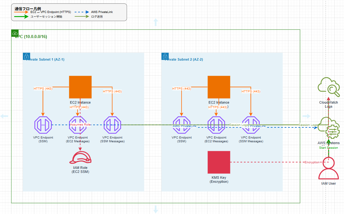 AWS公式アイコンを使用して、通信の流れを矢印でつないだ構成図を描いて。