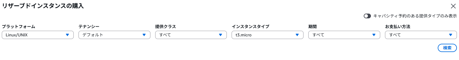 - 「リザーブドインスタンスを購入」ボタンをクリックします。