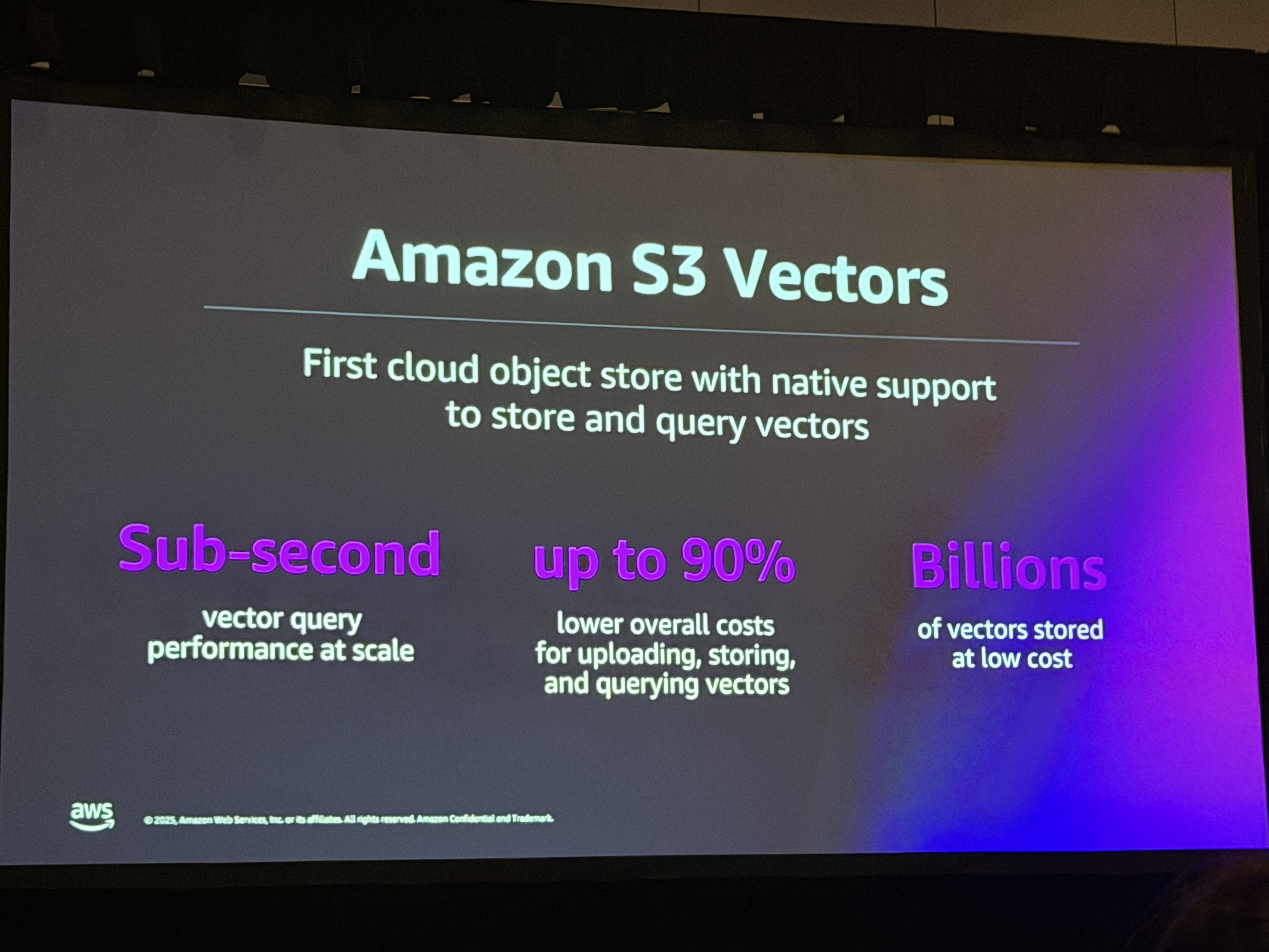 Amazon S3 Vectorsは、re:Invent 2025の期間中に一般提供(GA)が開始された、クラウドストレージのパラダイムシフトとも言える新機能です。世界初のネイティブベクトルサポートを持つクラウドオブジェクトストアです。