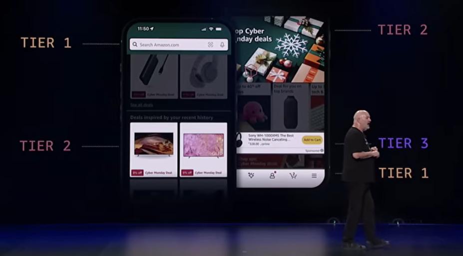 Amazon のウェブサイトを例に、システム機能を Tier 1〜3 に分類するフレームワークが紹介されました。