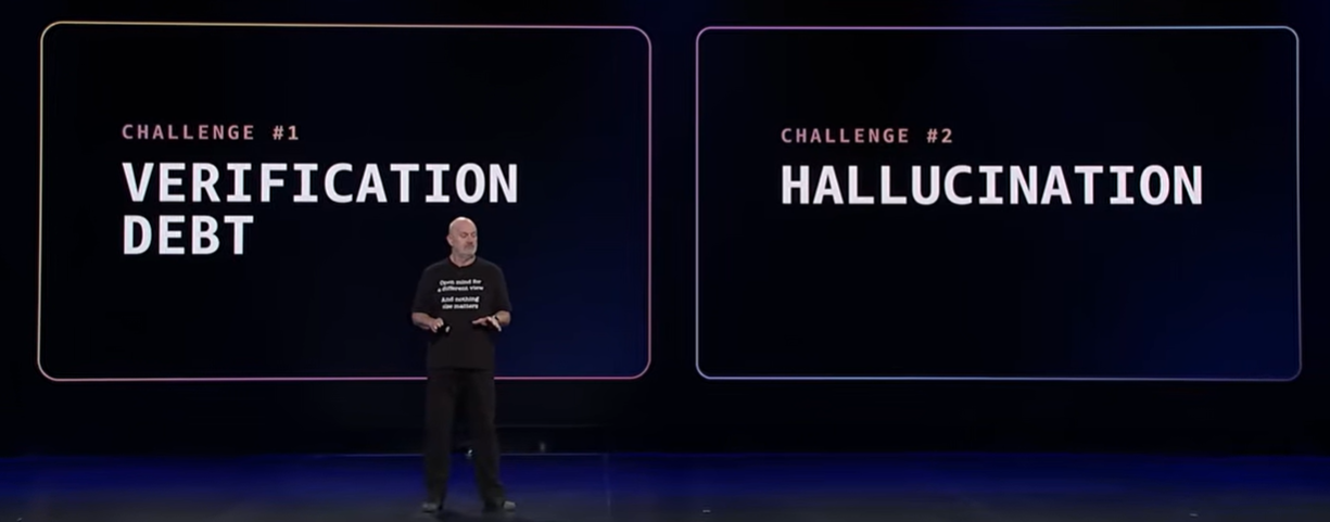 Werner は、AI 時代の開発者が直面する課題として特に次の 2 点を挙げました。