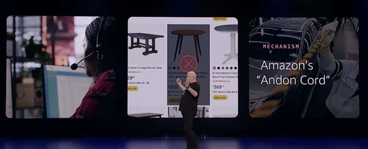 Bezos 氏は、トヨタの生産ラインを参考に、現場が商品を一時販売停止できる「アンドン・コード」を導入