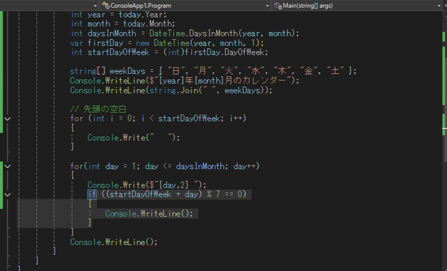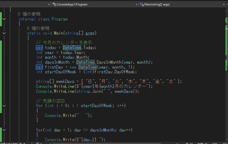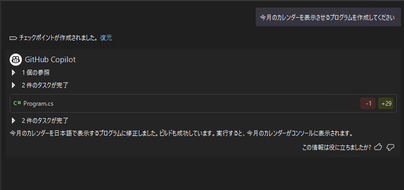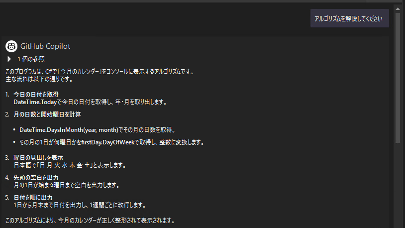 例として、「今月のカレンダーを表示させるプログラムを作成してください」といった指示をしてみたところ、