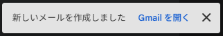 画面左下に、「メールの下書きを作成しています...」と表示され、1,2秒経つと「新しいメールを作成しました Gmailを開く」という表示に切り替わりました。