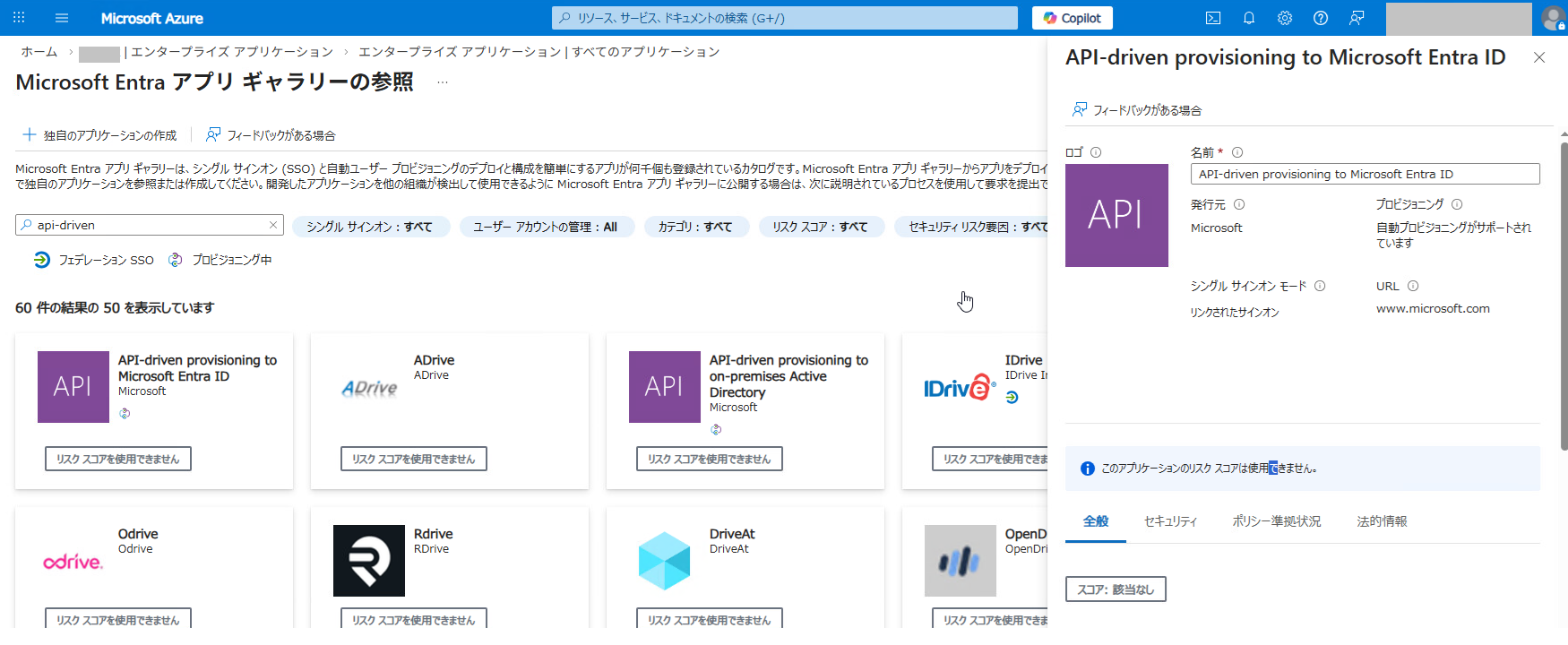 「エンタープライズ アプリケーション」の「API-driven provisioning to Microsoft Entra ID」からアプリを作成します。