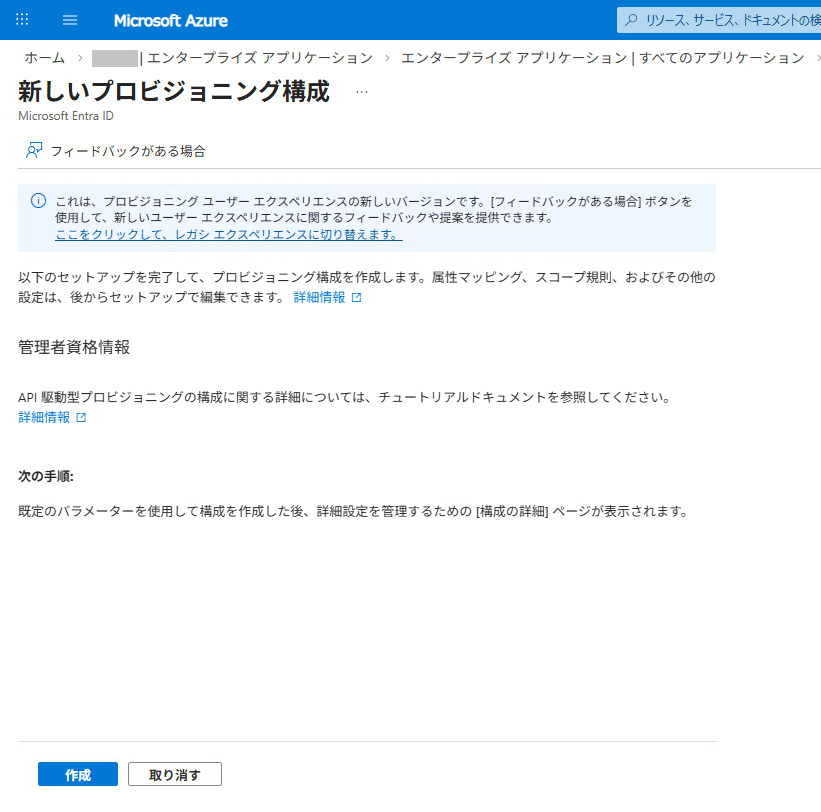 「プロビジョニング」を構成します。「作成」ボタンをクリックするだけで、既定の構成が用意されます。