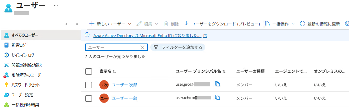 リクエスト送信後、少し待つと Entra ID 上に新しいユーザーが作成されました!
