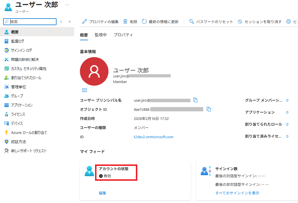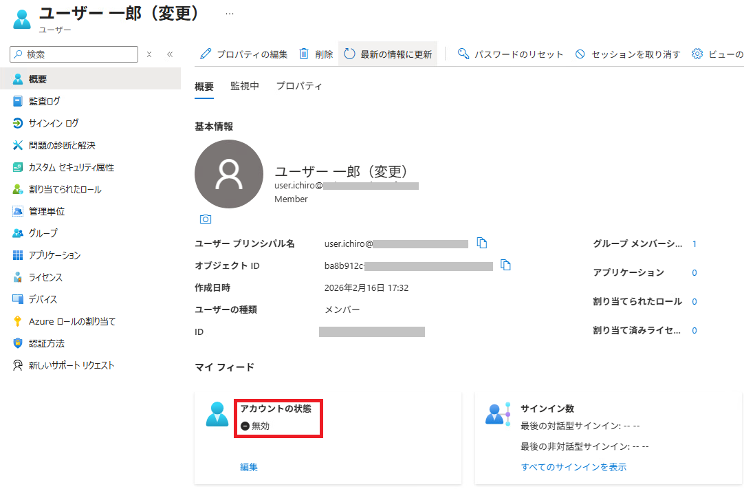 こちらもアカウントの状態が無効(accountEnabled が True ➡ False)に更新されたことがわかります。