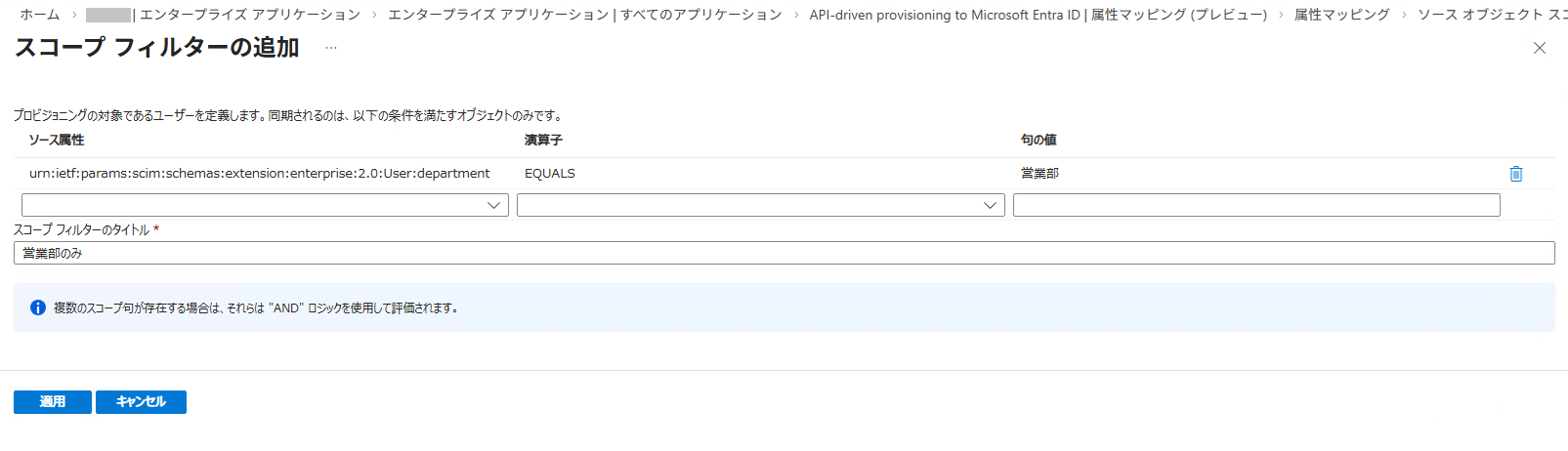 スコープの設定は、属性マッピングの「ソース オブジェクト スコープ」を設定します。