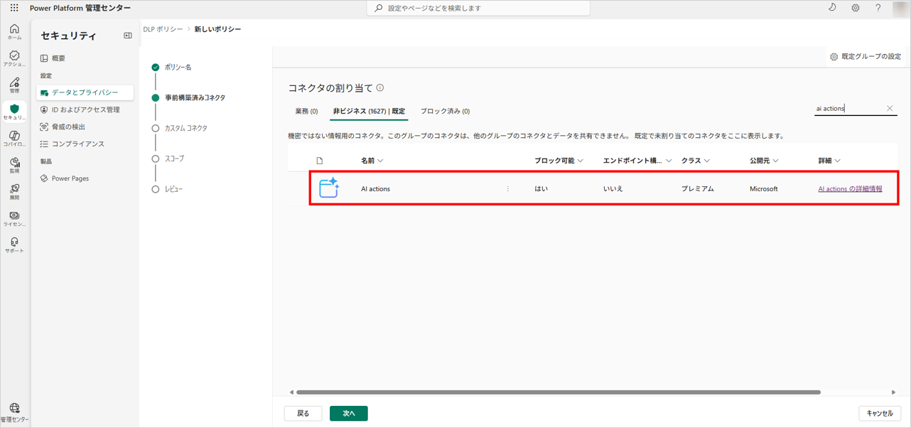 既に環境に何かDLPポリシーを割り当てている場合は、これを許可(DLPポリシーに含める)しないと機能自体が