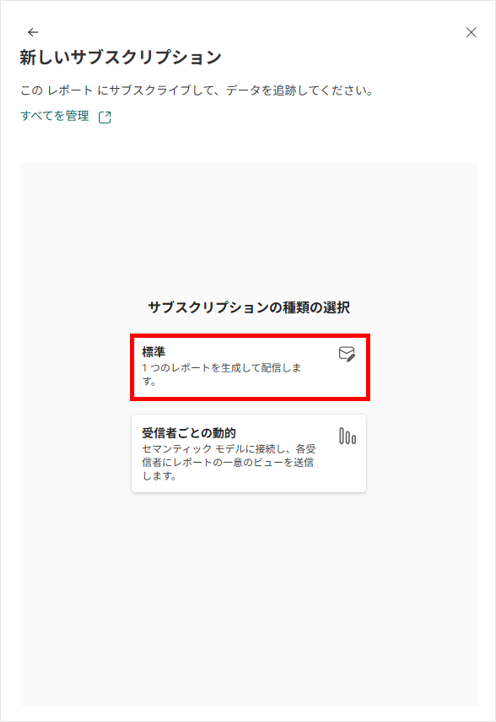 2. 1つのレポートを生成して配信する「標準」を選択。
