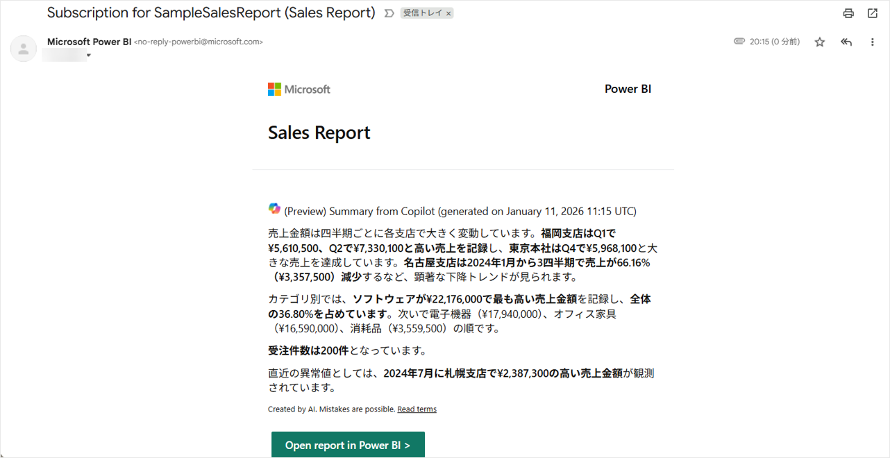 わざわざPower BIを開かなくても「昨日の売上は順調か?」がひと目でわかるため、マネジメント層にも喜ばれる機能だと感じました。