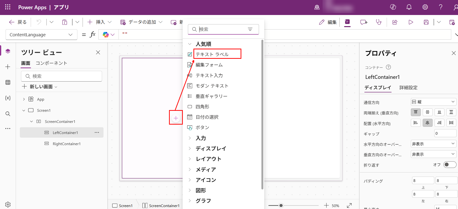 この2つのコンテナに、コントロール(ボタンやテキストボックス)を追加していきます。