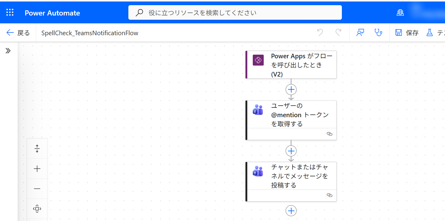 続いてキャンバスアプリからボタンを押下すると自動でTeamsに投稿できるようにするためにPower Automateを作成します。