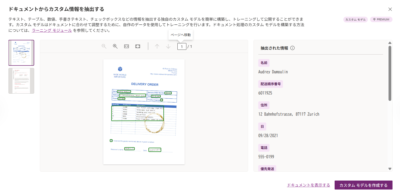 「決まった場所から値を抜き出したい」場合はドキュメント処理モデルなどが適しています。