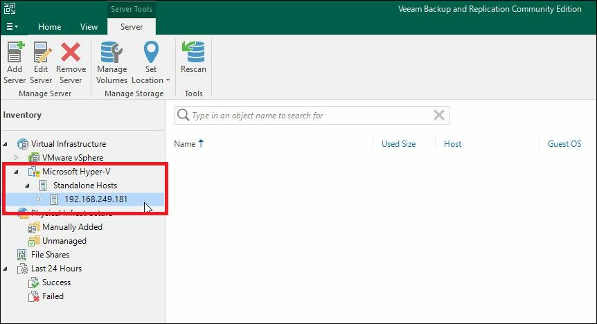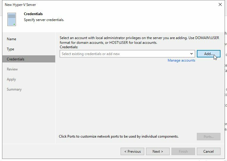 VeeamへのHyper-Vホストの追加