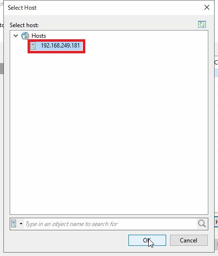 Select Host画面にて、リストア先のHyper-Vホストを選択し、「OK」をクリックします。