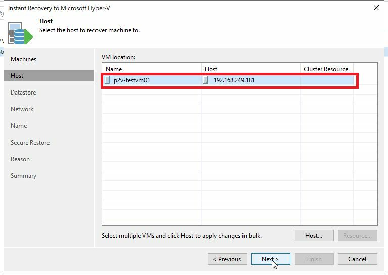 Instant VM RestoreによるHyper-Vホストへのリストア