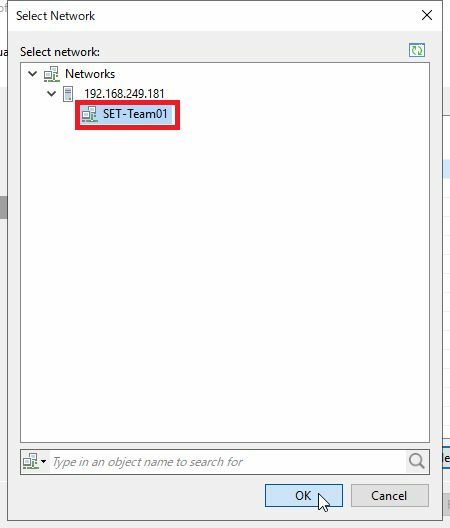 Select Network画面にて、仮想マシンで利用するHyper-Vホストの仮想NICを選択し、「OK」をクリックします。