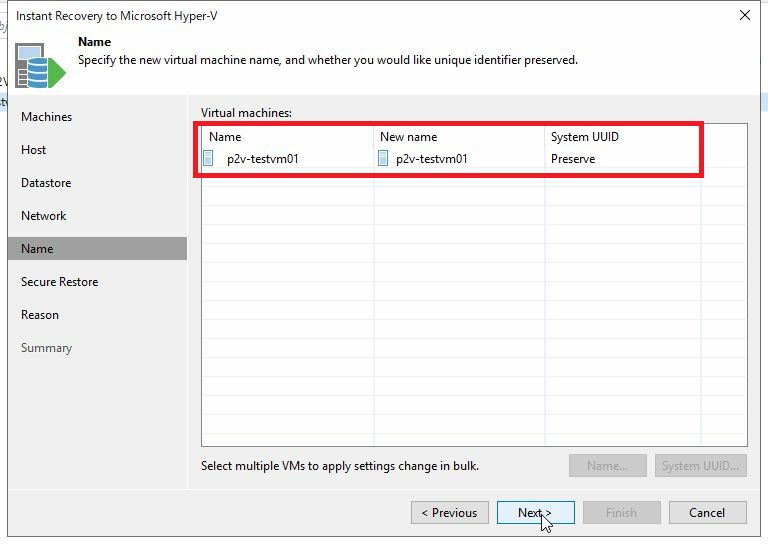 New nameはデフォルトで移行元仮想マシンと同じになりますが、変更したい場合は「Name」ボタンから変更可能です。