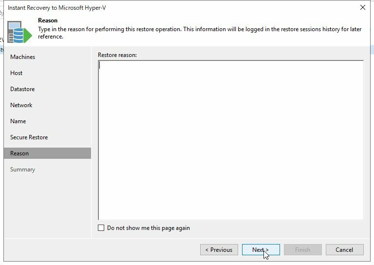 Instant Recovery to Microsoft Hyper-Vのウィザードが起動します。