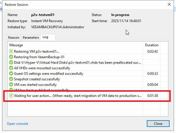 ●即時起動中はバックアップリポジトリ越しのI/Oとなるため性能は限定的で、安定運用のため本番ストレージへの移行を完了させる必要があります。
