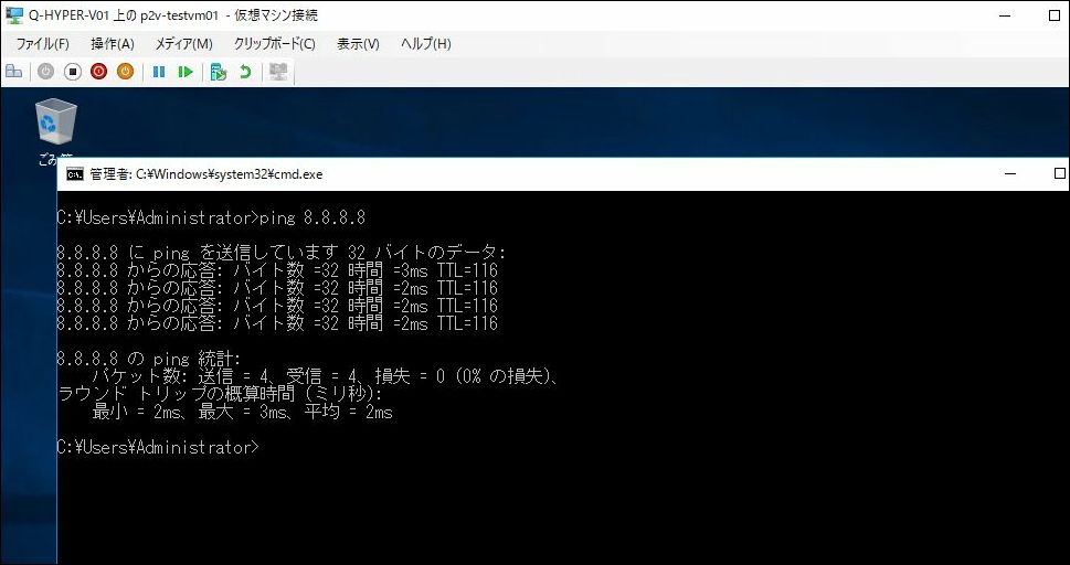 以上でVMware vSphereで稼働していた仮想マシンのHyper-Vへ移行が完了しました。