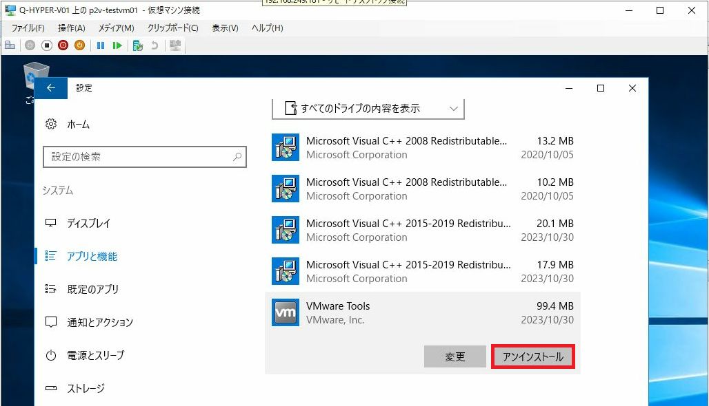 VMware Toolsなど、移行元仮想マシンで利用していたもので、移行後に不必要になったものをアンインストール処理します。